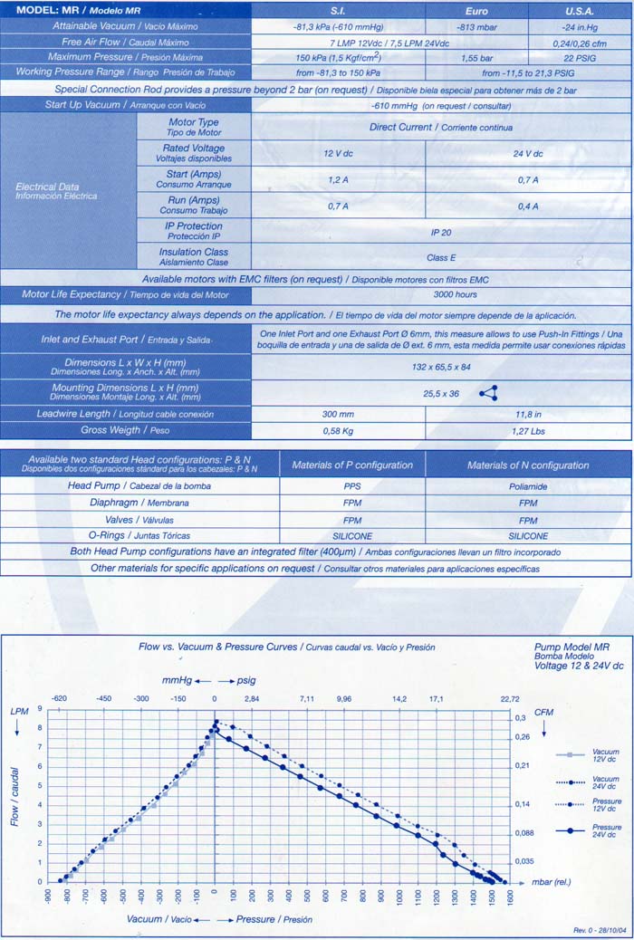 MR Micro Bombas de Menbrana para vacío y presón JSA Ferran Complementos del aire caracteristicas